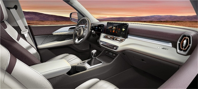 金剛炮秉承“極簡美學(xué)”理念,打造更具現(xiàn)代、科技、時尚元素的智能座艙,引領(lǐng)新一代商用皮卡設(shè)計潮流。儀表盤和中控屏采用無邊界懸浮雙屏設(shè)計,帶來新潮的視覺觀感及科技感。新車內(nèi)飾色彩運用撞色與純色多元視覺組合,灰紅、黑灰撞色設(shè)計年輕時尚,純黑顏色更顯高級純粹。