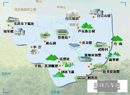 莫干山景點眾多,有風景秀麗的蘆花蕩公園、清幽雅靜的武陵村、蕩氣回腸的劍池飛瀑、雄氣逼人的怪石角、野味逼人的塔山公園,以及天池寺遺蹤、莫干湖、旭光臺、名家碑林、滴翠潭等30多處,隱于林間的173座近代別墅,薈萃了英、法、美、德、日、俄等各國風格,有“別墅大觀”的美名。從上海自駕到莫干山,Z好玩的是住在山里的老別墅里避暑,夏天熱的時候在這里住上幾天,什么煩惱都忘掉了。