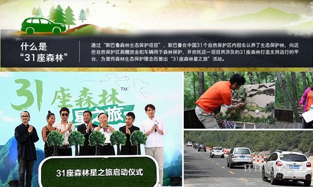 “31座森林星之旅”是由斯巴魯汽車(中國)有限公司依托“斯巴魯森林生態保護項目”,為宣傳森林生態保護理念而推出的首個大型活動。斯巴魯以自然生態保護理念結合旗下堪稱“遠行專家”的SUV車型搭建“生態遠行”的平臺,讓所有車主在以31座森林為目的地的遠行中實現與大自然的接觸,感受森林帶來的樂趣并在遠行中喚醒對綠色森林的生態保護意識。2013年7月至11月間,“31座森林星之旅”活動在全國開展以來,受到了社會各界人士的廣泛關注和支持,而全國各地無數斯巴魯車友通過這一活動進入國家級自然保護區探訪,在感受大自然樂趣的過程中體會到自己所應擔負的生態保護責任。2014年度“31座森林星之旅”第二季已經再度啟程,現即將登陸上海!8月30日,重磅演繹,精彩紛呈的內容拭目以待。