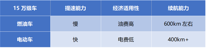 通過對核心需求的分析,很多車主反映電動車能解決號牌的燃眉之急、更經(jīng)濟適用、提速快、靜音好……燃油車or純電動車的答案一目了然。然而一線城市的車主還是或多或少存在著“里程焦慮”,表示400km續(xù)航是基本門檻。接下來便是尋找“15萬級純電動車的最優(yōu)解”。