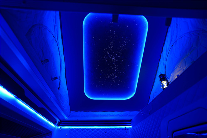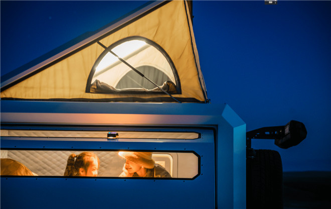 旅裝炮采用全鋁合金后廂體,車頂可加裝太陽能電池板,箱體內部配備逆變器儲備電池,解決了戶外生活的用電問題。選擇一塊視野開闊的地方停車,打開駐車熱水器洗個熱水澡,躺在1.9m*1.8m的超大雙人床上,升起車頂帳篷,和家人一起仰望星空,既浪漫又溫馨。