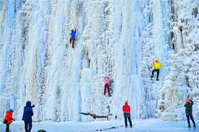冰球比賽、旱地冰壺、冰面釣魚、帶著愛犬來一把冰上飛盤……把偌大的冰湖當成運動場,在嬉笑漫步、談笑風生中冰面的寒風也沒那么刺骨了,對于極寒最無畏的勇氣,也是車主們對于生活的熱愛。國家一級運動員孜臻老師為車主們進行了攀冰教學,在白色的冰瀑上體驗一場人類極限與自然奇景的結合。