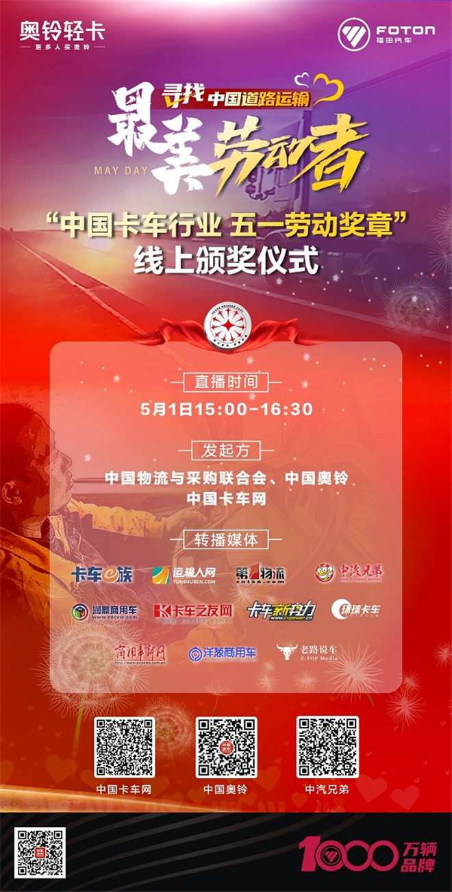 今年5月1日,中國奧鈴將攜手協會、媒體舉辦“致敬卡友·最美勞動者表彰大會”,為卡車司機們發聲鼓勁,向更多人傳達卡車司機為社會所做出的貢獻,并通過頒發中國卡車行業“五一勞動獎章”,為他們的付出表達感謝。