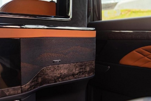 細節(jié)處采用奢華瑪瑙木紋裝飾件,豪華質(zhì)感升級。第二排新增立體水波紋地毯和棕山云海音響罩,營造典雅國韻之美。