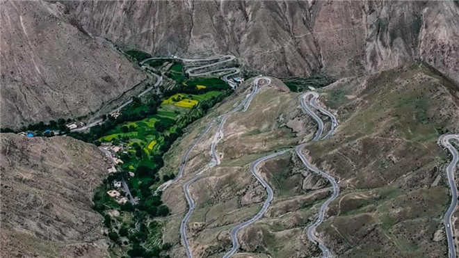 出芒康,繼續沿著盤山路向上,進入瀾滄江大峽谷,大峽谷的相對落差超過1000米,江水湍急涌動,這里也開始讓我們領略了G318高海拔落差和艱險的一面。