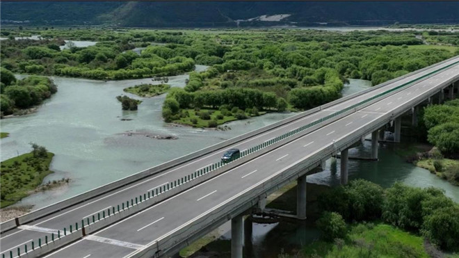 ▲林芝高速上,橫跨雅魯藏布江的水上公路