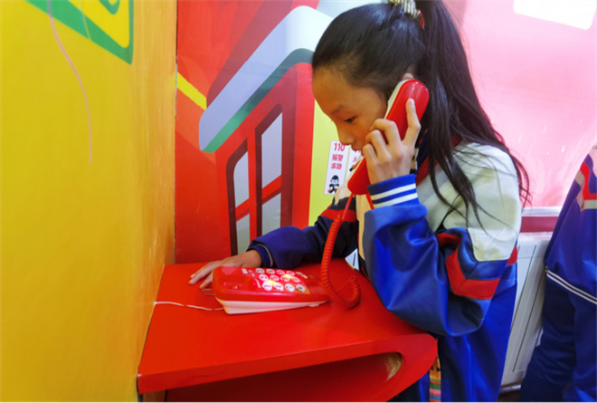 <學(xué)生正在演練如何撥打報(bào)警電話>