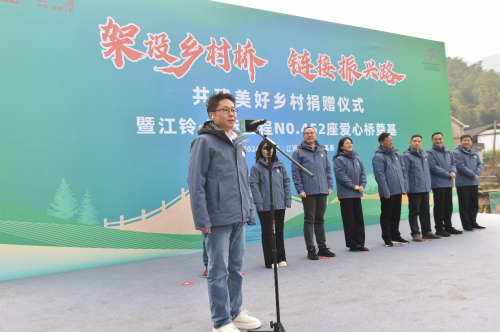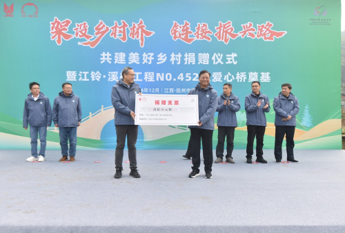 12月22日,江鈴·溪橋工程共建美好鄉村捐贈儀式暨第452座愛心橋奠基在江西省撫州市資溪縣彭田村舉行,江鈴汽車股份有限公司、中國鄉村發展基金會、江西萬物生汽車科技有限公司等合作伙伴共同見證。