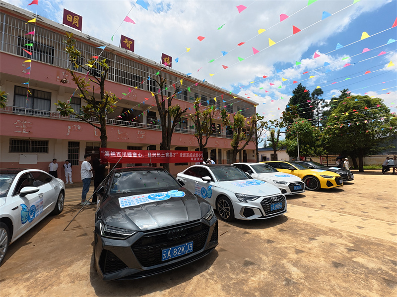 翻開這支“移動愛心驛站”的公益日志,一串溫暖有力的數字,記錄下三年來奔赴山鄉的一系列善舉。2022年9月,13輛奧迪車組成首支助學車隊,69位車友奔赴楚雄彝族自治州武定縣大羊圈村,為其籌集書籍、文具、冬衣等物資;2023年4月,76位車友接力前往昆明德馨實驗學校,為特殊兒童送去萬元愛心包裹;2024年,增至119人的參與者募得兩萬余元善款,9輛奧迪車滿載教學用具駛入紅河哈尼族彝族自治州建水縣盤江鄉蘇租小學;2025年,曲靖宣威市熱水鎮的助學之行,再次匯聚103位車友,11輛奧迪車承載著兩萬余元的物資,為述迤村完全小學送去愛心。