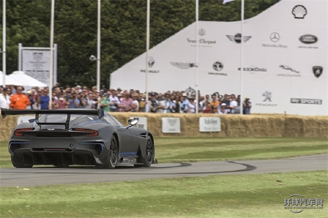 這臺功率超過800制動馬力、全碳纖維車身的阿斯頓·馬丁Vulcan還參加了著名的古德伍德登山賽。在阿斯頓·馬丁車隊車手Darren Turner駕駛下,呈現出極為強勁的動力性能和扣人心懸的亮點。在爬山賽首發前,全新車型也在超級跑車圍場的米其林舞臺上展出。