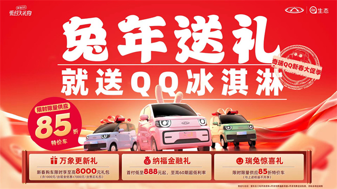 恰逢奇瑞新能源“愛的大禮物 Q樂過新年”新春大促活動火熱進行,多重好禮超值享,新春購奇瑞小螞蟻&奇瑞無界Pro限時享至高萬元禮包,首付低至1888元起,至高60期超低利率;新春購奇瑞QQ冰淇淋限時享至高8000元禮包,更有限時限量85折特價車,多重優惠福利,有效降低購車門檻,輕松購車無憂出行,在新的一年開啟幸??鞓沸侣贸?。