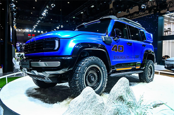 值得一提的是,為了讓更多用戶體驗到多樣化的越野樂趣,北京汽車與運良越野合作,共創推出全新BJ40·飛俠,這款定制改裝車型與全新BJ40一同亮相。全新BJ40·飛俠在全新BJ40的基礎上進行20項升級,主要通過線條勾勒力量感,隆起的前機蓋起設計,突顯肌肉感。同時針對懸架和行駛部分進行強化提升,非鋪裝路況支撐性和脫困能力大幅提升。