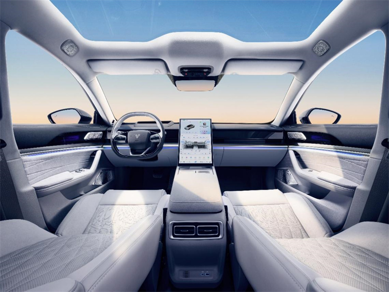 哪吒S獵裝的內(nèi)飾設(shè)計(jì)家族化比較明顯,17.6英寸的中控屏呈豎向設(shè)計(jì),大小堪比平板電腦,顯示內(nèi)容非常豐富,不過液晶儀表的尺寸就比較小了。
