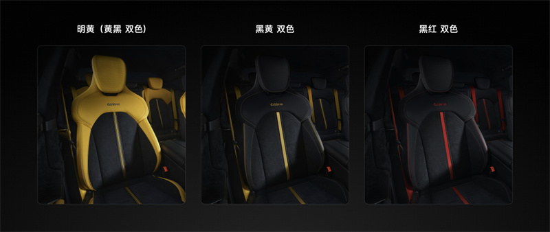 還有多種可選配置,5種外飾顏色,閃電黃、珍珠白免費,其余三款顏色選裝9000元!3款內飾顏色,明黃色免費,其余兩款黑/黃雙色、黑/紅雙色選裝3000元!