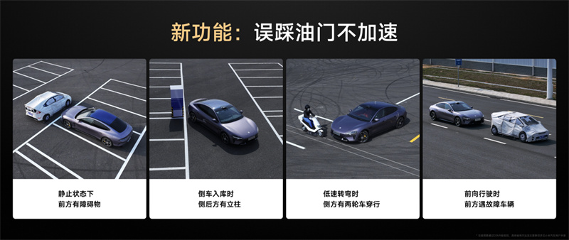 其中,小米SU7 Ultra新增誤加速抑制與全向低速防碰撞功能,在有碰撞風險的情況下,加速踏板踩下無反應,系統會自動抑制車輛加速。同時,當與障礙物即將發生碰撞時還會聯動AEB系統完成制動,更大程度避免或減輕碰撞事故風險。
