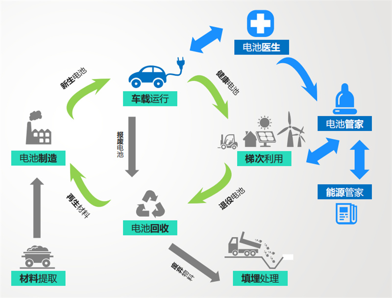 面對電池全生命周期管理問題,上汽自研電池全生命周期云管理平臺。依托精準評估電池健康度的“電池醫生”、將不同狀態電池分流到不同場景的“電池管家”以及通過物聯網技術實時進行能源調配的“能源管家”,上汽乘用車精準落地以“電池整包完整利用-篩選模組利用-篩選電芯利用-材料回收利用”為基礎的系列梯次利用、再生利用項目成果,助推電池完成從“新生”到“再生”的綠色循環。