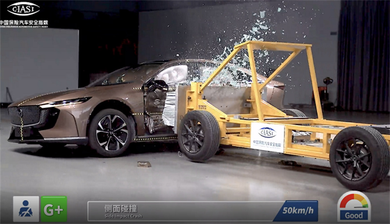 [側(cè)面碰撞測試,EZ-6底盤防護(hù)到位,電池未漏液、未起火、未爆炸]