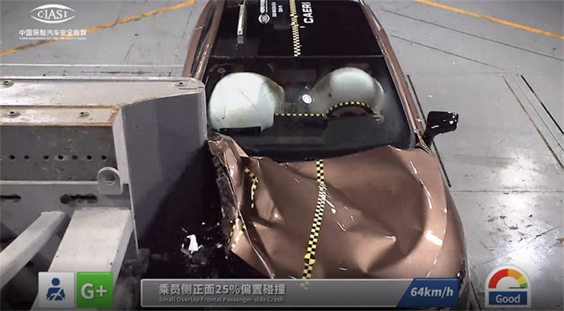 [25%偏置碰撞測試,EZ-6乘員艙未變形,氣囊防護(hù)到位]