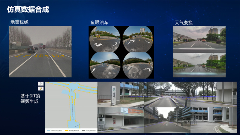 仿真數據合成服務采用多種方法生成數據以滿足不同需求。例如,針對地面標線生成、泊車魚眼數據生成以及天氣轉換等場景,智駕團隊較早便開展了相關研究,并應用包括Diffusion方法和純仿真渲染在內的多種技術手段。