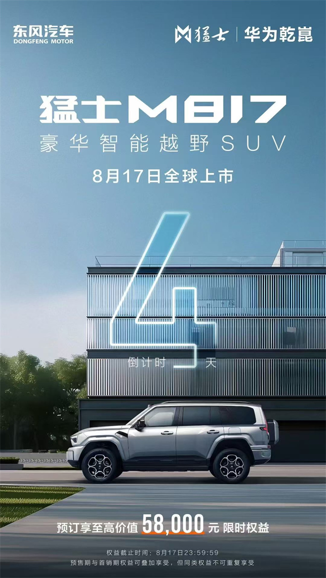 隨著全國媒體試駕的口碑發酵,猛士M817“智能越野第一車”的標簽已深入人心。可城可野可遠方,重新定義豪華智能越野SUV新標桿。據悉,猛士M817將于8月17日正式上市,屆時還會有怎樣的驚喜?讓我們共同期待。