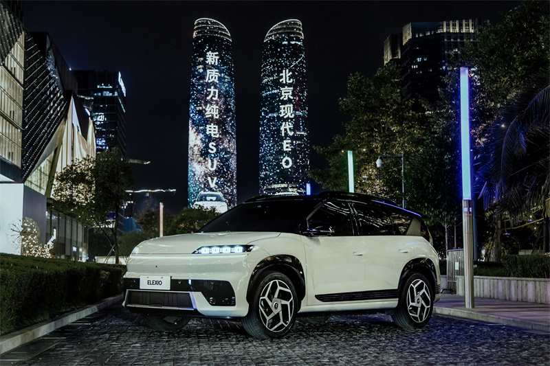在雙子塔巨幅光影的演繹下,北京現代EO(ELEXIO)的外觀設計盡顯自然力量與現代科技的融合之美。作為北京現代首款純電平臺SUV,北京現代EO(ELEXIO)以自然簡約力量美學的設計理念:蚌式前臉設計,輪廓飽滿又兼具立體感;如肌肉線條般充滿力量感的側身設計,線條分明,和自然美學融合得相得益彰。