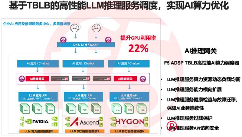 這是訪談中最具顛覆性的場景。謝乾屹透露,F5是目前全球唯一能基于GPU資源做動態調度(TBLB, Token Based Load Balance)的應用交付廠商。“我們發現車企的GPU服務器利用率嚴重不均,A服務器達90%,B服務器僅60%。”F5的TBLB方案通過優化Token分配,在某個頭部客戶實現了22%的利用率提升——這對動輒數百萬一臺的GPU服務器來說,價值巨大。在提升GPU利用率的同時,F5 TBLB方案也能顯著降低AI推理應用中的Token延遲,優化了用戶的AI應用體驗。