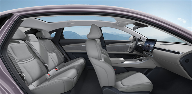 eπ007的車身尺寸來到了4880/1895/1470mm,軸距2915mm,妥妥的中大型車身材。25處儲物空間+電動掀背尾門,實(shí)用性絕對沒得說。后排空間堪稱"寬敞級",腿部、頭部空間都十分充裕,且坐墊長度足夠支撐大腿,靠背角度貼合人體工學(xué),即便是長途乘坐也能保持舒適姿態(tài)。