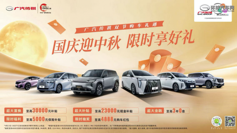 值此金秋九月,廣汽傳祺也誠意推出限時禮遇政策,助你更輕松地為生活注入駕控樂趣。影豹限時9.8萬元起,購車即送全險(包括交強險和商業(yè)險(車損險+第三者責(zé)任險));同時,分期付款可享受0首付+8萬3年免息的金融方案;現(xiàn)在更有國慶中秋雙節(jié)限時購車禮遇,至高補貼58000元,限時抽獎還有機會得至高4888元紅包!(詳情請咨詢當(dāng)?shù)亟?jīng)銷商)