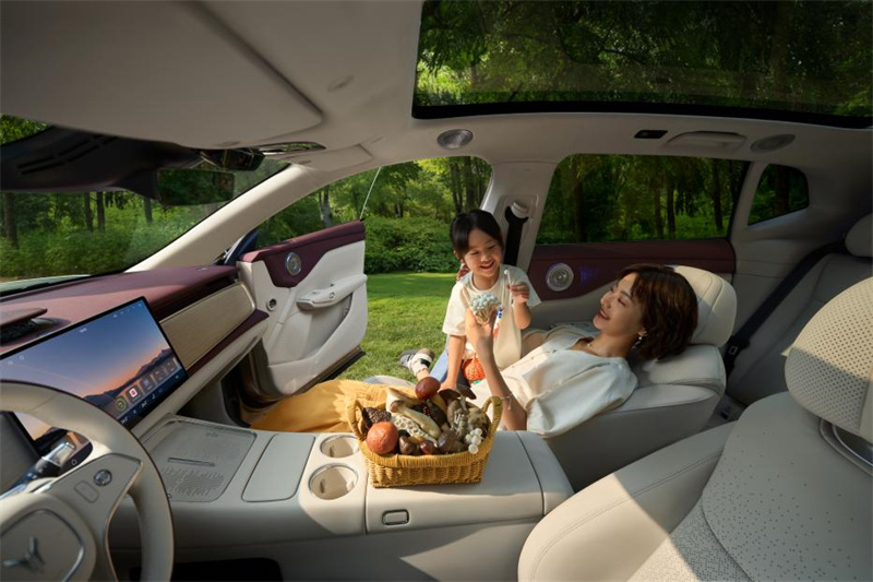 對于家庭用戶而言,空間和舒適性是重要的訴求。全新嵐圖知音以行業領先的90.8%得車率,打造出5.2㎡超大實用空間、1038mm的超大后排腿部空間,以及同級最大的16.4㎡軟質包覆面積,再配合高級環保材質的內飾用料,營造出觸感與質感兼具的奢適座艙。