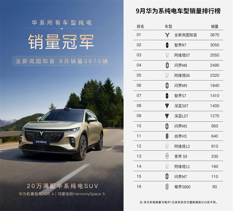 然而,一匹黑馬從側翼殺出:“20萬滿配華為純電SUV”全新嵐圖知音以3670輛的成績空降榜首,成為華為系純電車型的銷量冠軍。這場“內卷”背后,是華為技術加持下,產品定位、價格與用戶需求的激烈碰撞。