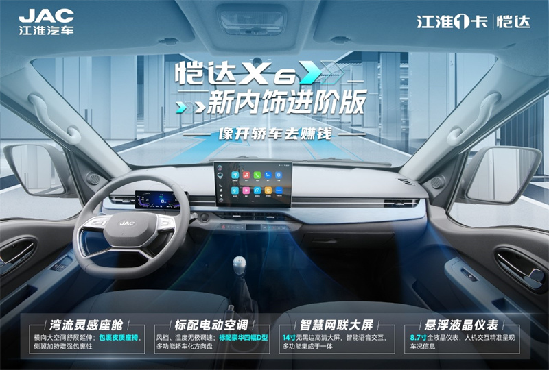 當前,小微卡用戶的需求正從“能裝能跑”向“好開好用”深度演進。江淮1卡洞察到這一變化,推出的愷達X6進階版,其核心在于將轎車級的駕乘感受融入專業的城配工具中,為駕駛員提供全新的解決方案。