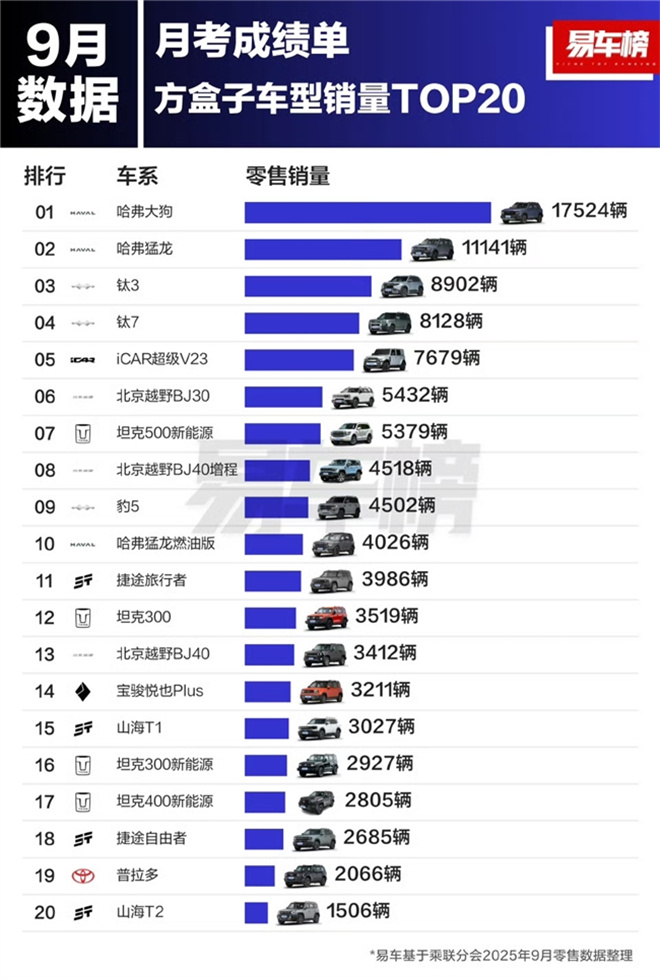 金秋9月,哈弗大狗以月銷17524輛的戰績雙線告捷:不僅強勢登頂易車榜9月方盒子車型銷量冠軍,更成功躋身易車榜緊湊型SUV第4名,用實力鑄就雙重榮耀。這一成績,正是哈弗大狗深度調查消費者需求,深耕3/4刻度泛越野精準定位的有力見證。