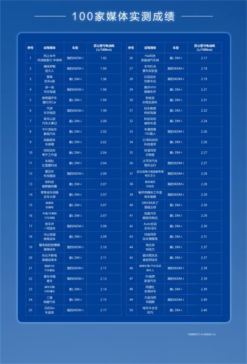 第五代DM技術再進化,此前經過百家媒體實測,秦L DM-i和海豹06DM-i車型的實測百公里虧電油耗全部低于2.4L,比權威機構認證的2.6L還要低,從實測可以看出第五代DM技術進化后更省了。