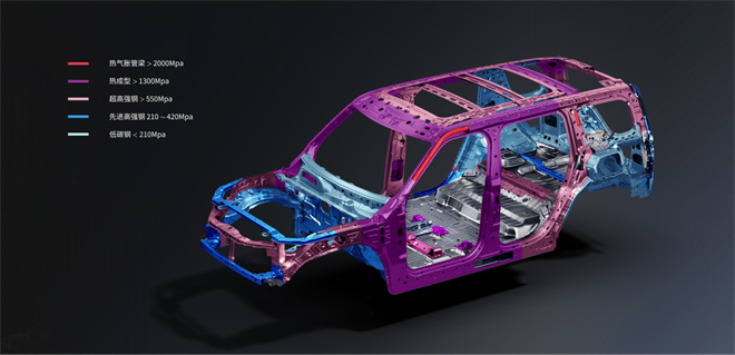 猛士M817全車高強鋼占比高達83.2%,其中2000MPa熱成型材料結構總長度達12.48米,相當于4-5頭成年大象站在一枚硬幣上的強度。即便在越野途中遭遇磕碰,高強度鋼材也能有效抵抗車身變形,為車內人員提供安全空間。
