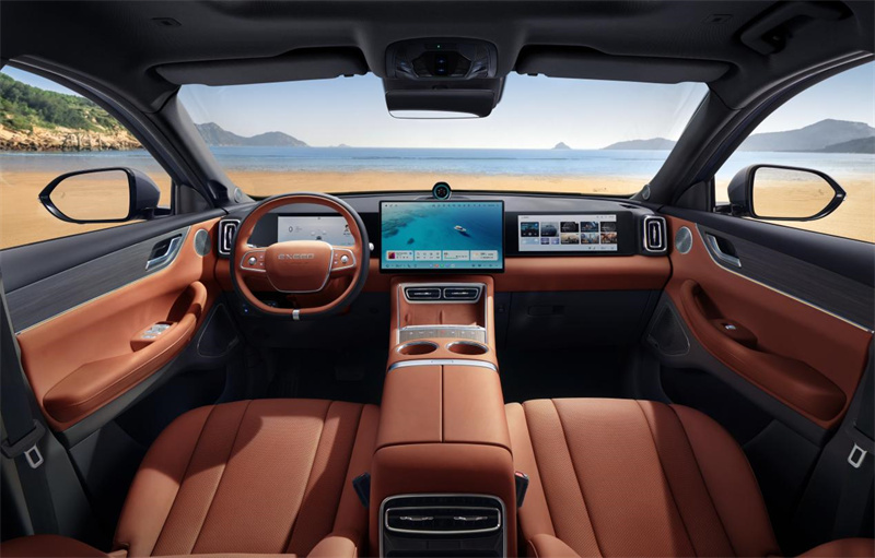 觸覺上,愛馬仕橙的真皮座椅與麂皮頂棚形成材質(zhì)的對話,前者的細(xì)膩與后者的柔軟,恰似東方絲綢與絨毯的碰撞,每一次觸碰都是對“奢華質(zhì)感”的重新定義;聽覺上,21揚伯牙之音音響在愛馬仕橙座艙的包裹下,7.1.4全景環(huán)繞聲音效如在中式庭院中回蕩,“無麥K歌”功能更是讓車內(nèi)變成了可移動的東方戲臺;視覺上,三聯(lián)屏的科技感與愛馬仕橙的傳統(tǒng)韻味交織,“三指飛屏”的操作如揮毫潑墨,將現(xiàn)代交互變成了一場東方雅戲。