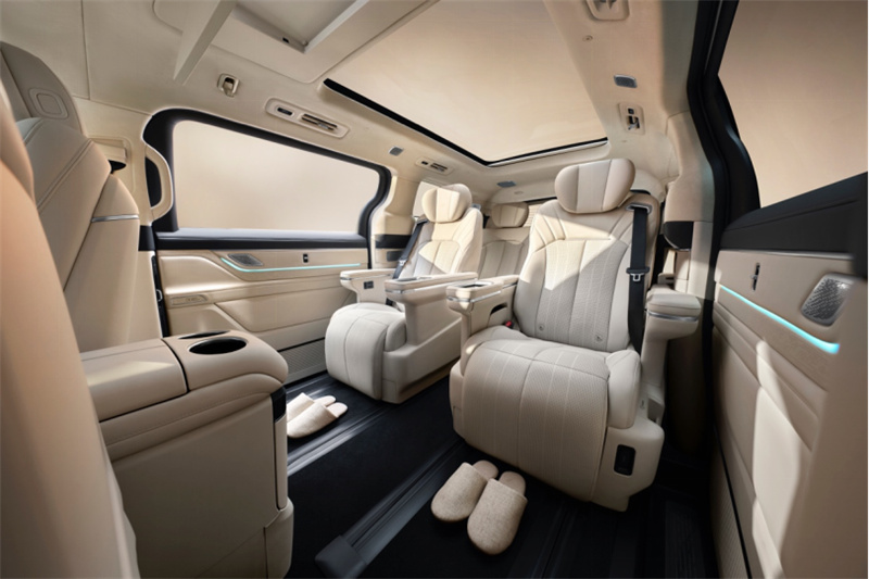 內(nèi)部座艙呈現(xiàn)出了旗艦級的奢適格局,艙內(nèi)色彩溫暖柔和,營造出自然舒適的氛圍。超大面積全景天幕延伸至第三排上方,使得整車視野更加開闊通透。二排座椅寬大舒適,盡顯尊貴感;三排同樣空間充裕,打破了傳統(tǒng)MPV三排局促的刻板印象,也意味著用戶將享受到與以往截然不同的豪華出行體驗。二排小桌板進一步拓展了使用場景,移動辦公、會客等皆可輕松實現(xiàn)。細節(jié)處的儲物空間設(shè)計,也體現(xiàn)出銀河V900無微不至的貼心考量。