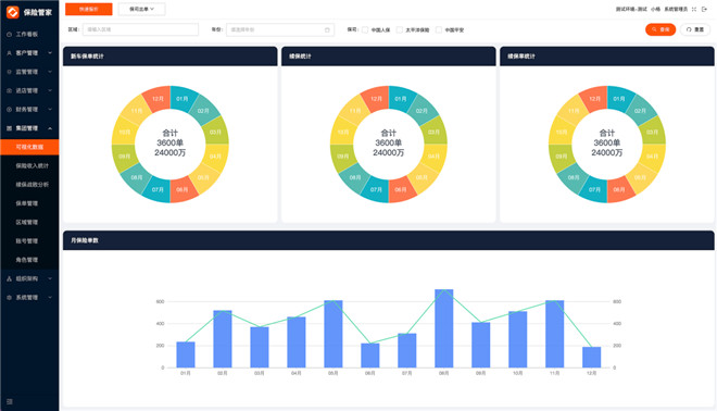 車百靈之保險(xiǎn)管家的集團(tuán)管理功能可以實(shí)時(shí)查看保險(xiǎn)收入統(tǒng)計(jì)、戰(zhàn)敗分析等集團(tuán)可視化數(shù)據(jù),經(jīng)銷商集團(tuán)可以實(shí)現(xiàn)對(duì)經(jīng)銷商門店們進(jìn)行分區(qū)域的保單管理、賬號(hào)管理、角色管理等自上而下的管理功能。從而幫助經(jīng)銷商集團(tuán)管理門店的業(yè)務(wù)數(shù)據(jù)等核心信息,實(shí)時(shí)動(dòng)態(tài)管控,提升管理效率。