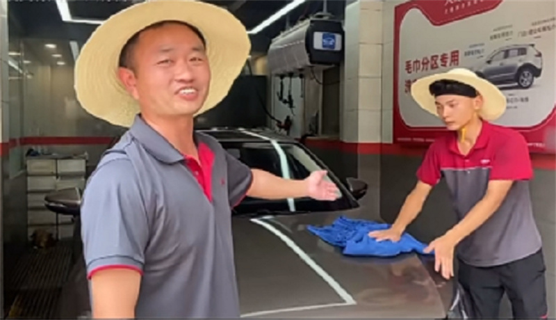 炎炎烈日,他和店員經常戴著草帽為用戶洗車,人稱“帽子哥”。
